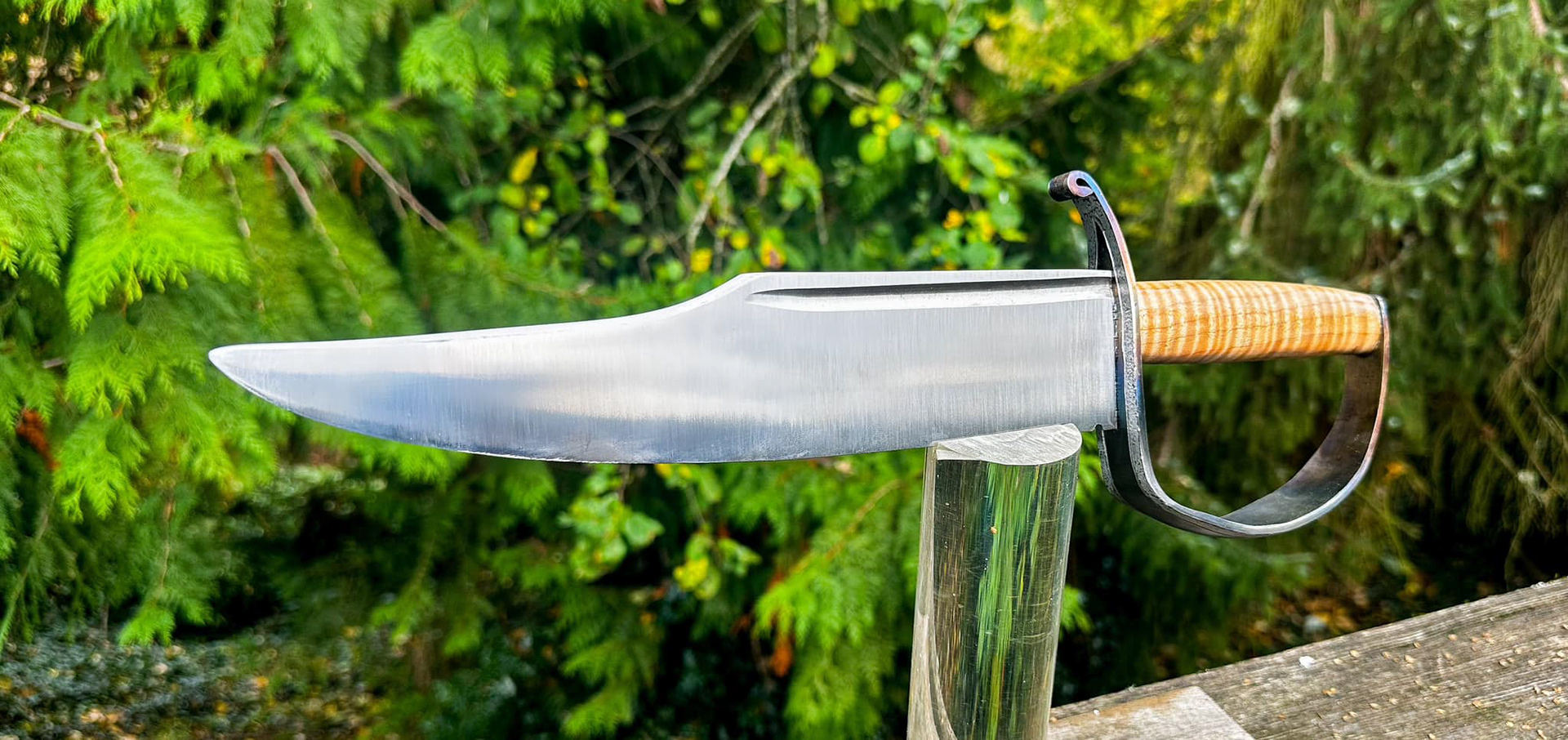 Recurve, maple burl handle, 5160 blade with steel guard