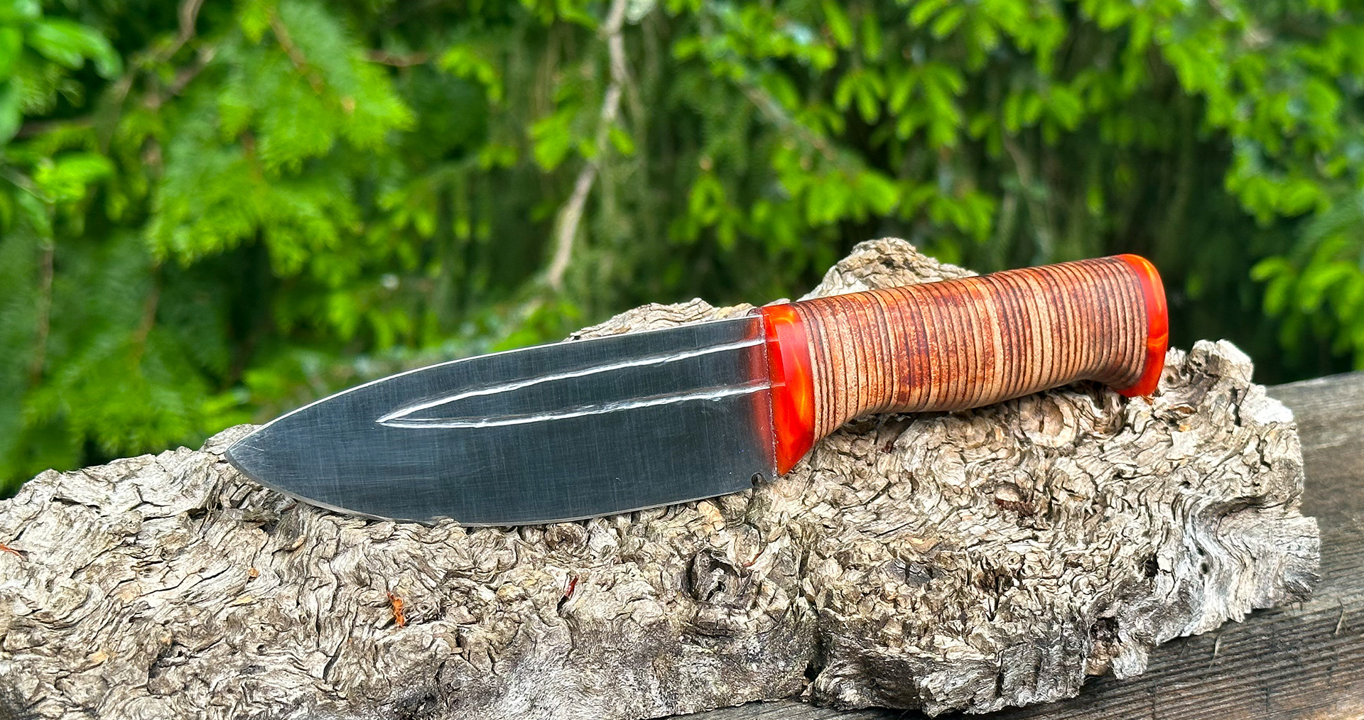 KIP Knife, 1084/15n20 blade with black ash burl scales